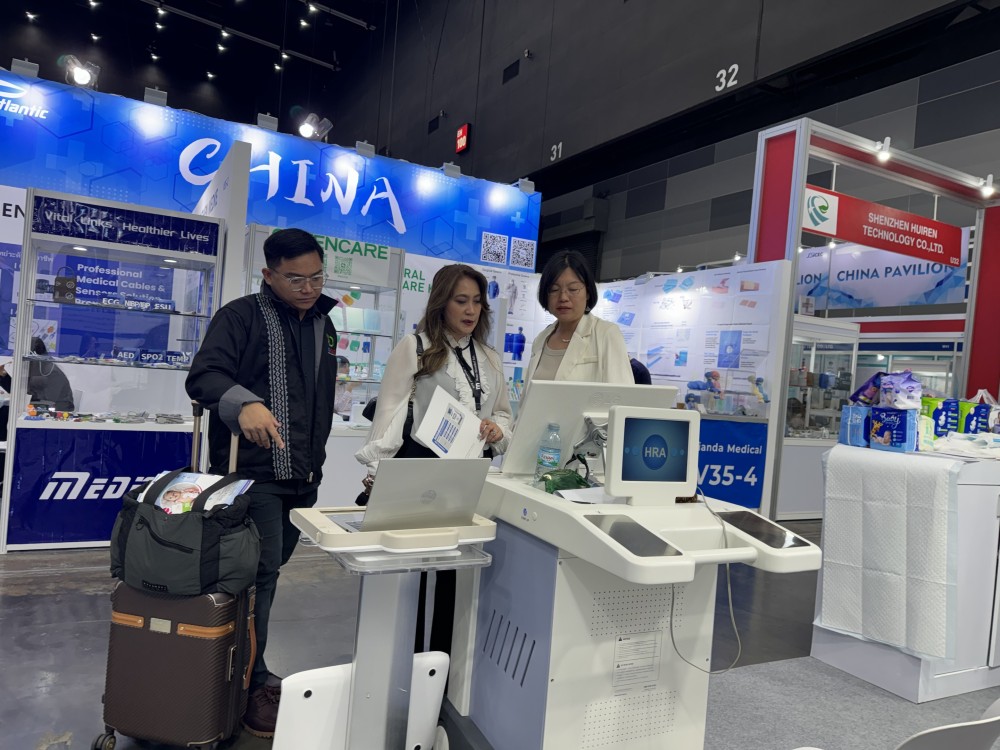 此次展會中,惠斯安普攜多款核心明星產(chǎn)品重磅亮相,包括具備精準(zhǔn)健康篩查能力的健康風(fēng)險(xiǎn)評估系統(tǒng)、專注微循環(huán)改善的脈沖磁微循環(huán)治療系統(tǒng),以及針對認(rèn)知功能提升的記憶力障礙訓(xùn)練儀。憑借先進(jìn)的技術(shù)原理、貼合臨床需求的產(chǎn)品設(shè)計(jì)與顯著的應(yīng)用效果,惠斯安普展臺自開展首日便成為全場焦點(diǎn),吸引了來自泰國、馬來西亞、菲律賓、新加坡、印度、澳大利亞等多個(gè)國家的醫(yī)療從業(yè)者、機(jī)構(gòu)代表,采購商的駐足觀摩。工作人員圍繞產(chǎn)品功能、臨床案例與合作模式展開詳細(xì)講解,現(xiàn)場咨詢氛圍熱烈。