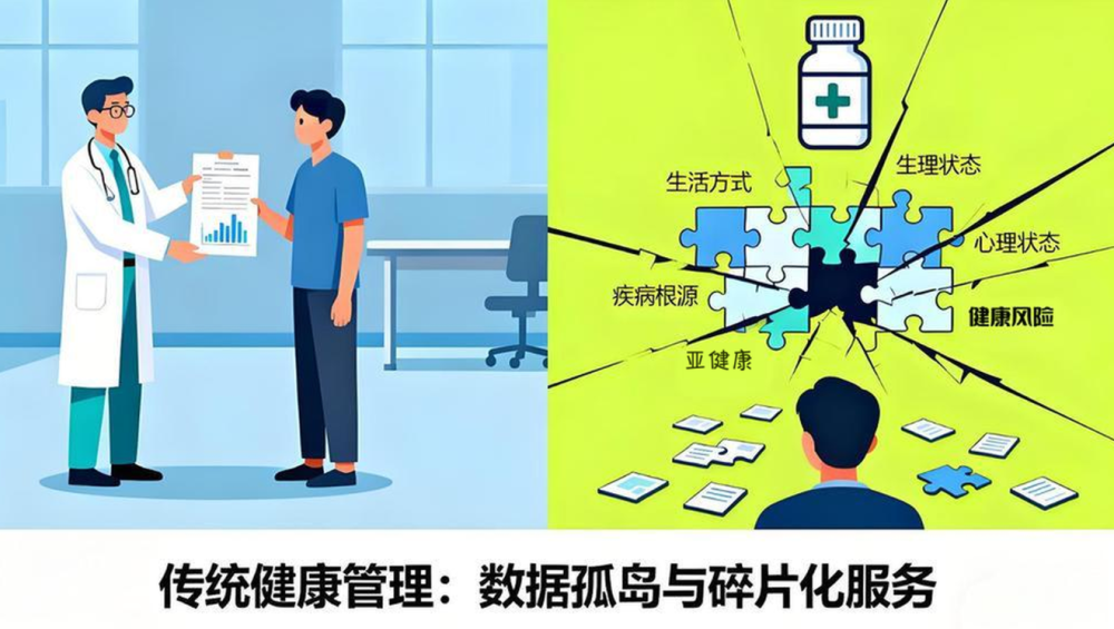 傳統(tǒng)的大健康賽道長(zhǎng)期以來聚焦于“疾病治療”。當(dāng)人們身體出現(xiàn)明顯病癥時(shí),主要依賴藥物與手術(shù)進(jìn)行干預(yù)。在這個(gè)過程中,服務(wù)呈現(xiàn)出碎片化狀態(tài)。例如,體檢機(jī)構(gòu)僅負(fù)責(zé)健康檢查,出具報(bào)告后與后續(xù)環(huán)節(jié)脫節(jié);醫(yī)院專注于疾病診斷與治療;康復(fù)中心則在患者治療結(jié)束后進(jìn)行康復(fù)訓(xùn)練。各個(gè)環(huán)節(jié)各自為戰(zhàn),缺乏有效銜接與整體規(guī)劃,無法為消費(fèi)者提供連貫、全面的健康服務(wù)。