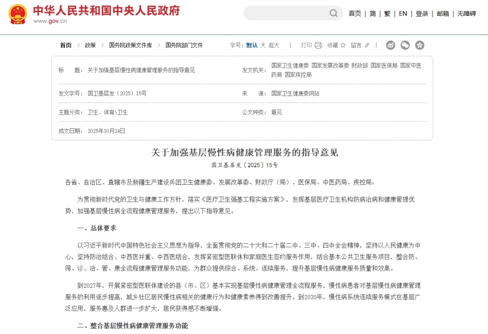國家衛(wèi)健委等六部門日前發(fā)布《關(guān)于加強基層慢性病健康管理服務的指導意見》,要求結(jié)合基本公共衛(wèi)生服務項目,整合“防、篩、診、治、管、康”全流程健康管理服務功能,為群眾提供綜合、系統(tǒng)、連續(xù)服務,提升基層慢性病健康服務質(zhì)量和效果。這一政策的出臺,直指基層慢性病管理的痛點——過去部分地區(qū)存在服務碎片化、流程不連貫、針對性不足等問題,而整合全流程服務的要求,恰好為數(shù)字化健康管理模式的落地提供了政策指引,也為破解基層健康服務難題開辟了新路徑。